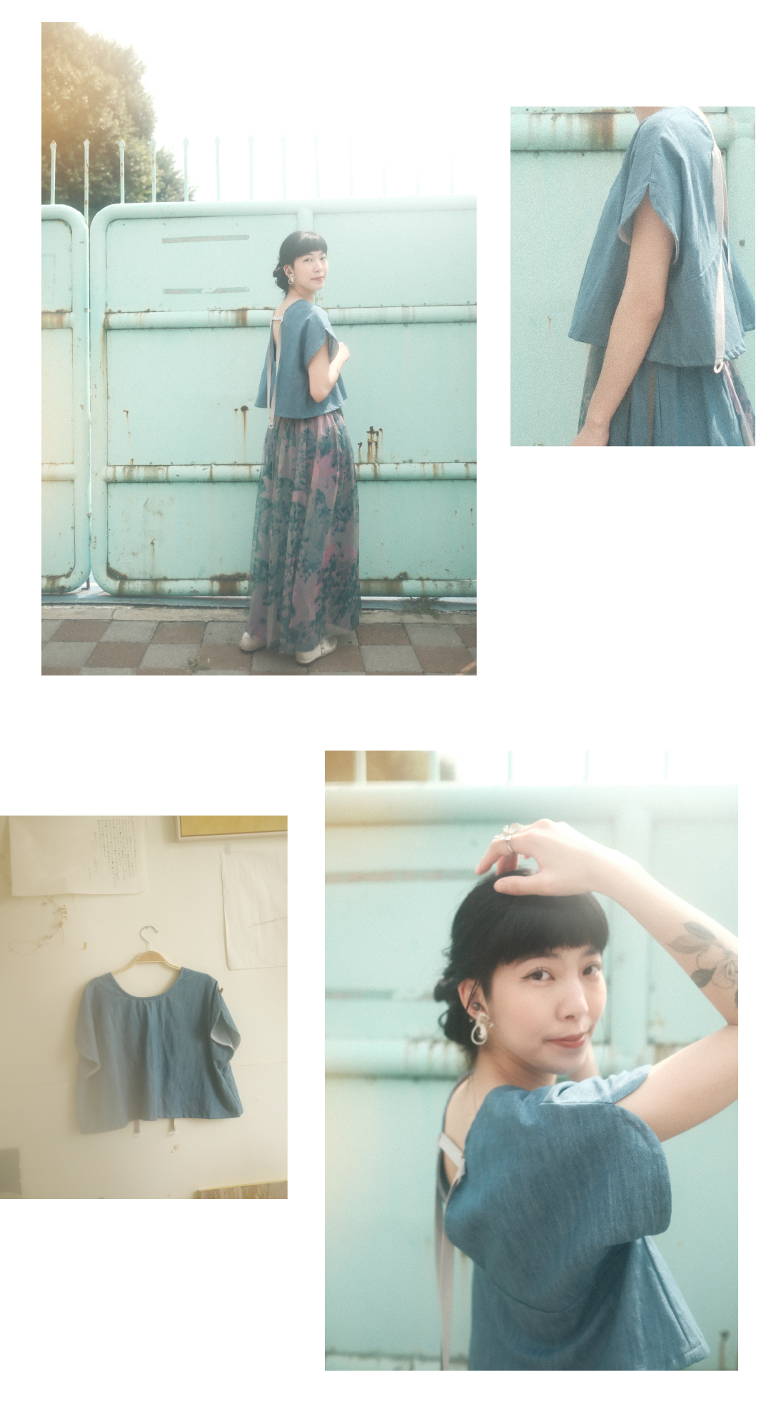 像夏天裡的果實般清爽。選用高品質單寧牛仔布地,空氣感寬鬆剪裁舒適透氣。背後點綴如耳飾般精巧的透明圓環串珠,在轉身間擺盪出優雅韻律。