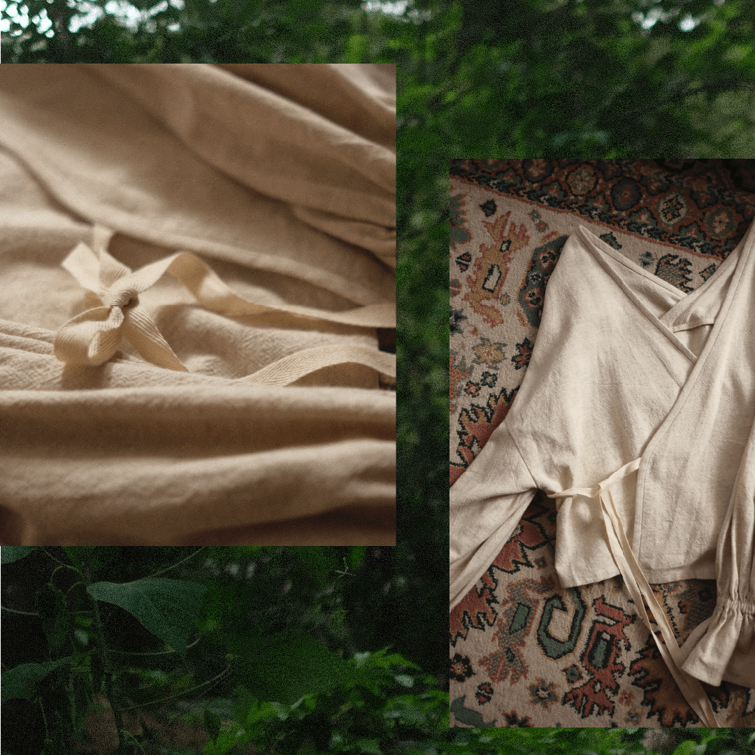 圍裹式的設計,搭配前後v領的樣式,露出內搭,更顯層次;