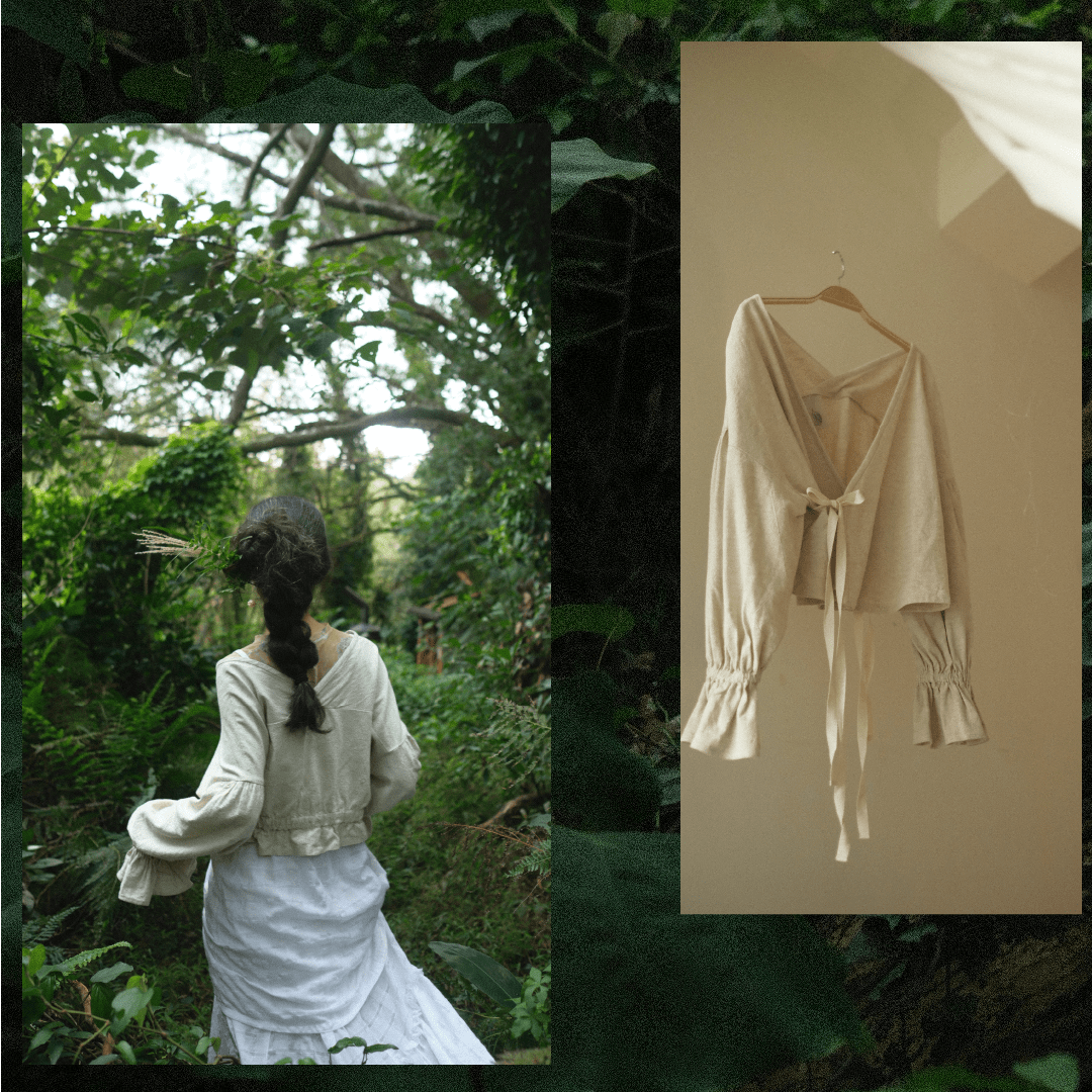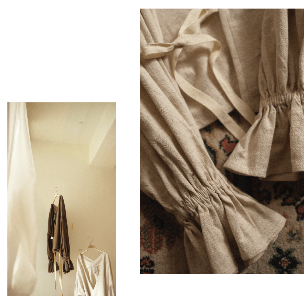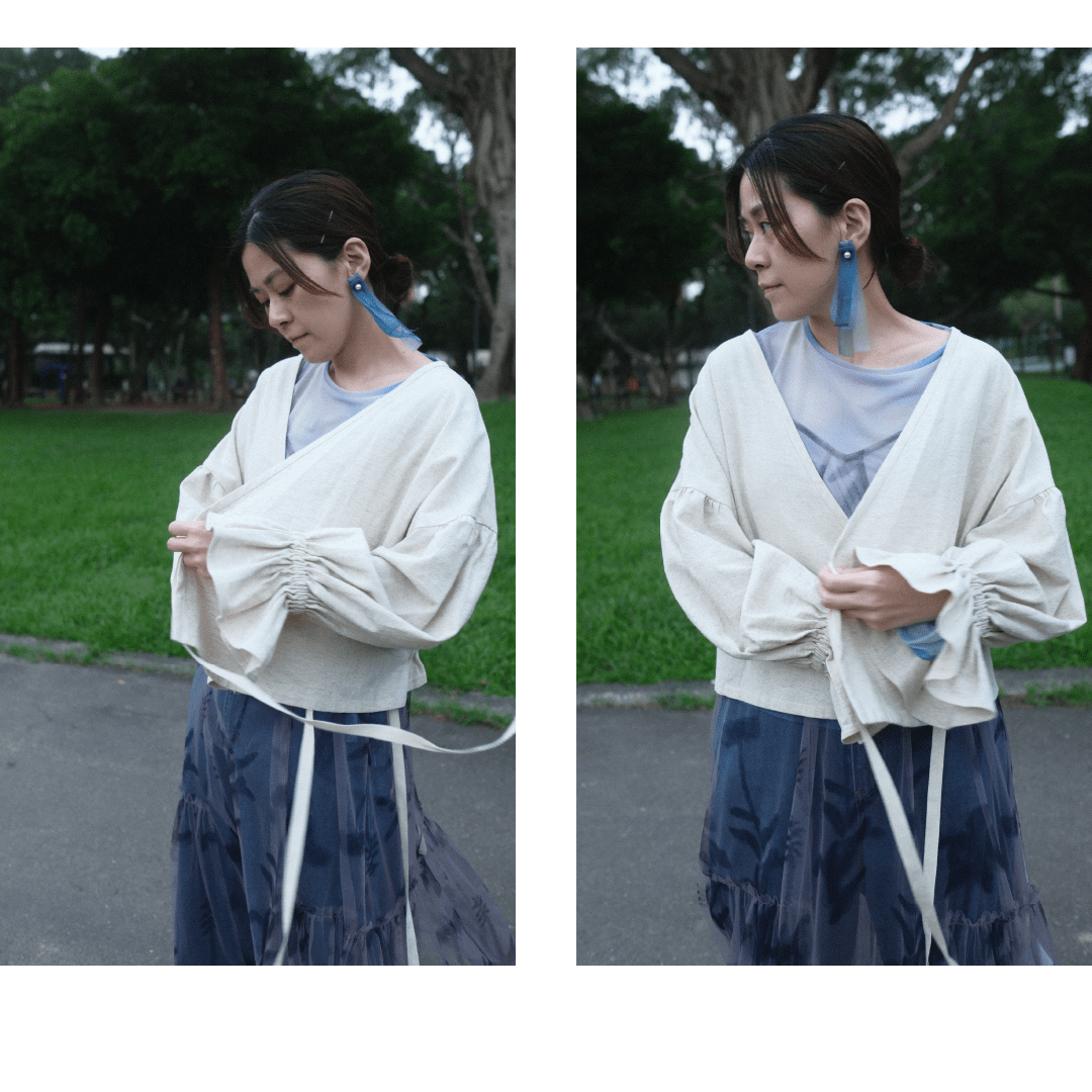 獨具存在感的蓬鬆糖果袖與後方腰身鬆緊的設計相呼應,
