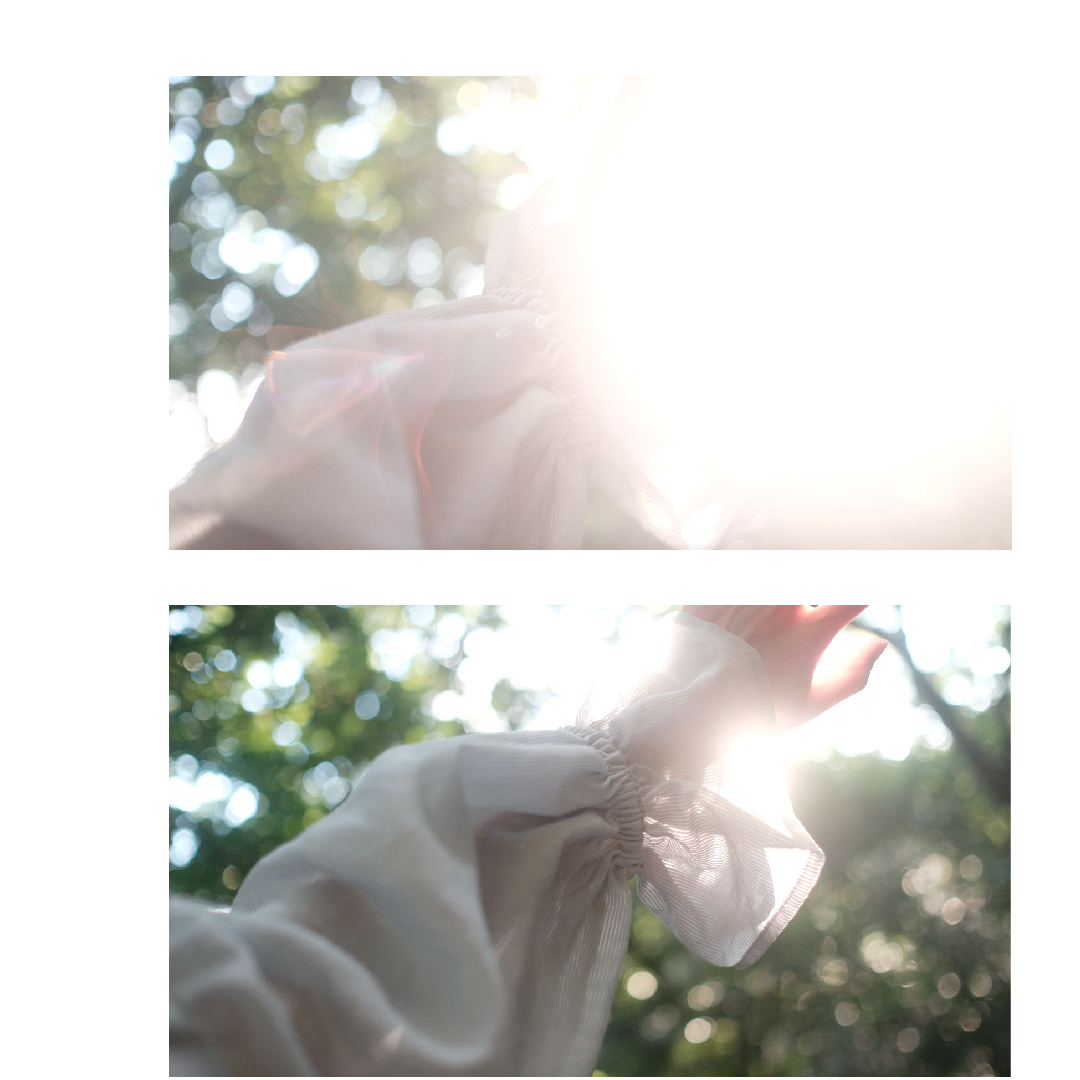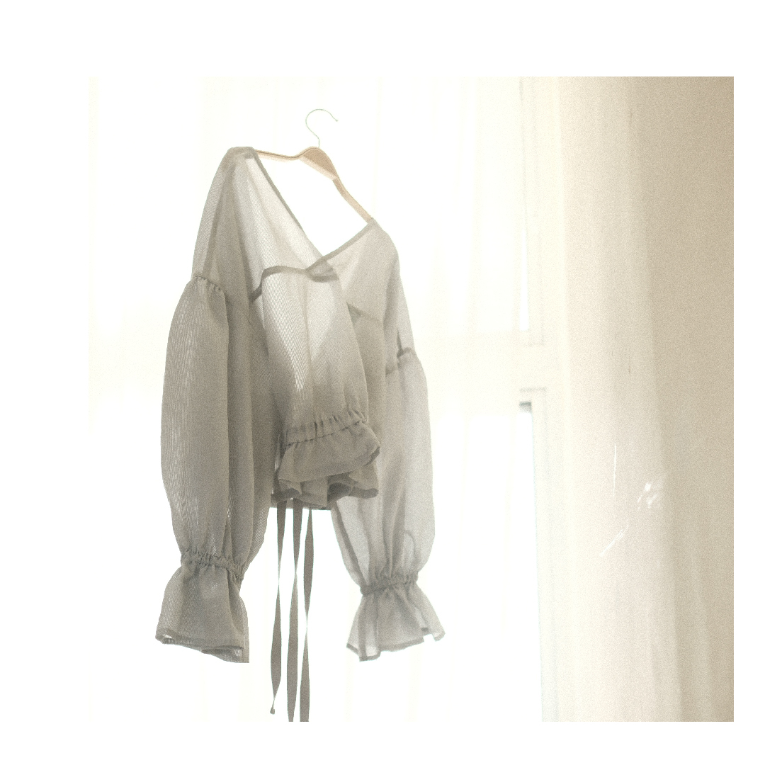 獨具存在感的蓬鬆糖果袖與後方腰身鬆緊的設計相呼應,