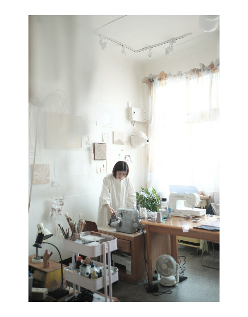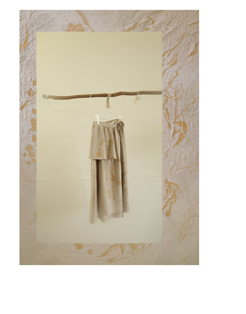 彼加的經典裙款,水洗棉麻布柔軟的垂墜性,調配鏽染汁,親手繪染,每一筆都像與植物一同舞蹈。